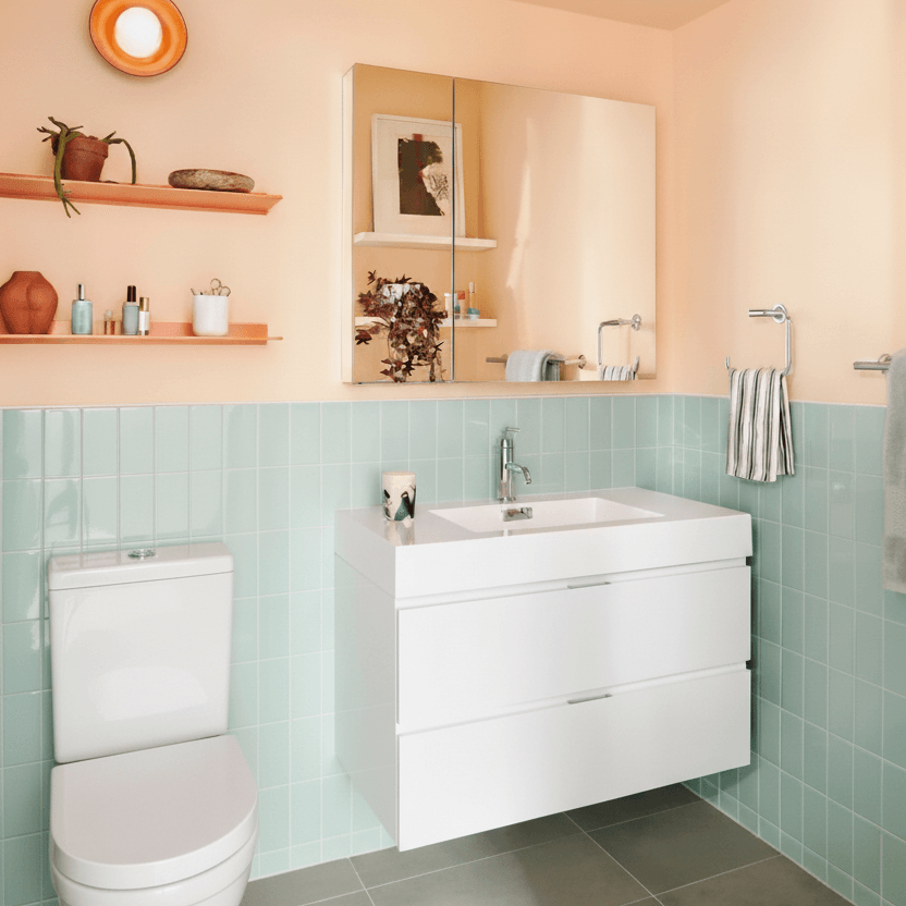 Lorsqu’il est marié à des carreaux de couleur pastel ou douce, le joint blanc confère une atmosphère douce et apaisante à l’espace. Les lignes claires délimitent juste assez chaque carreau pour souligner le motif, tout en laissant les teintes délicates au premier plan. Cette combinaison préserve la fraîcheur et la légèreté de l’ensemble, ce qui en fait un excellent choix pour les espaces où l’on désire une touche de couleur sans altérer la sérénité de la pièce. Imaginez un instant cette salle de bain pastel avec un joint sombre : l’impact visuel serait radicalement différent.